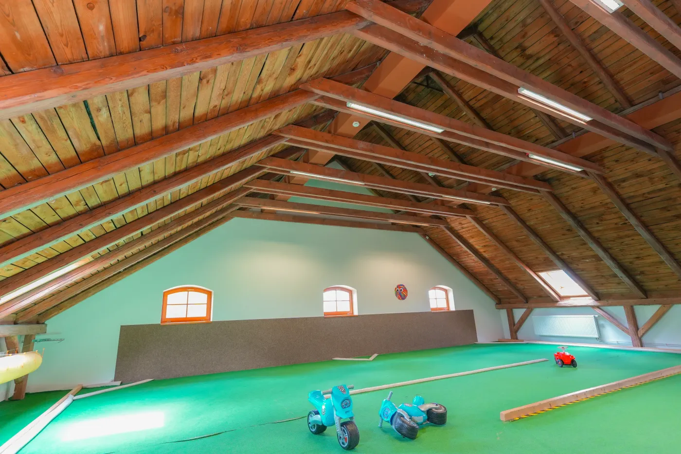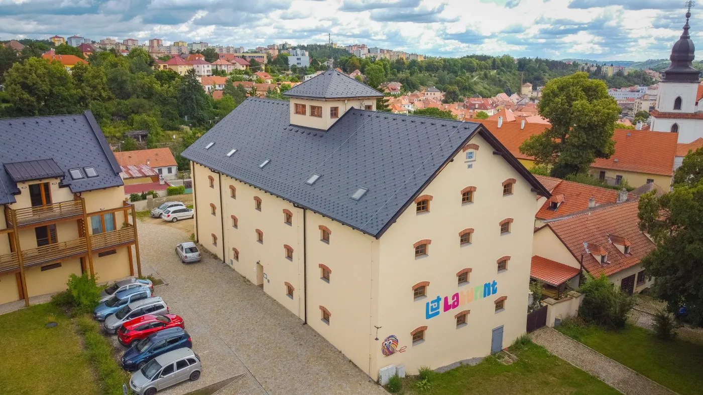 Uprostřed historického centra Třebíče, jen pár kroků od baziliky sv. Prokopa, jsme proměnili chátrající sýpku v moderní zábavní park Labyrint. Původní stavbu jsme doslova „oholili“ na obvodové zdi a zcela ji vybudovali znovu – včetně nových stropů, konstrukcí a interiéru. Výsledkem je atraktivní prostor, který spojuje moderní řešení s duší původní budovy. Klenotem rekonstrukce jsou ručně opracované dřevěné konstrukce , které dávají celému objektu nezaměnitelný charakter.